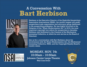 A conversation with Bart Herbison File under: on October 25, 2022 Calendar Add to Calendar Add to Timely Calendar Add to Google Add to Outlook Add to Apple Calendar Add to other calendar Export to XML When: November 7, 2022 @ 10:00 am – 10:50 am 2022-11-07T10:00:00-06:00 2022-11-07T10:50:00-06:00 Where: Johnson Center Large Theater- 115
