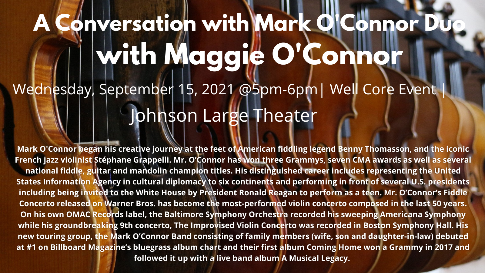 A Conversation with Grammy Award Winning Musician-Mark O’Connor Duo with Maggie O’Connor File under: on September 13, 2021September 13, 2021 Calendar Add to Calendar Add to Timely Calendar Add to Google Add to Outlook Add to Apple Calendar Add to other calendar Export to XML When: September 15, 2021 @ 5:00 pm – 6:00 pm 2021-09-15T17:00:00-05:00 2021-09-15T18:00:00-05:00 Where: Johnson 115 Contact: Alex Quattlebaum 615-460-6259 Email