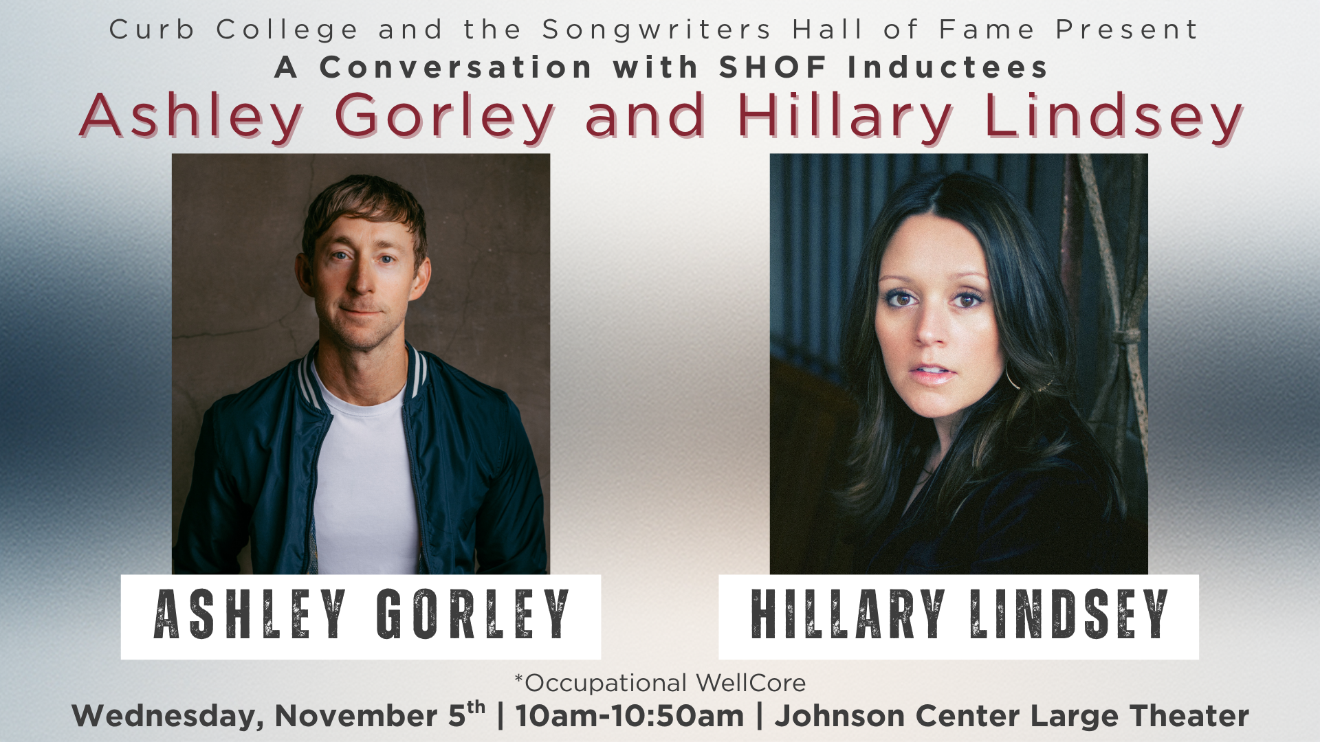 Curb College and the Songwriters Hall of Fame Present: A Conversation with SHoF Inductees Ashley Gorley and Hillary Lindsey | WellCore Seminar