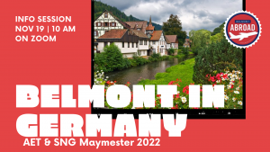 This virtual event will allow interested students to learn more about the Belmont in Germany AET & SNG Maymester Program to Berlin and Frankfurt. This session will be conducted over Zoom and will provide important information about the program.