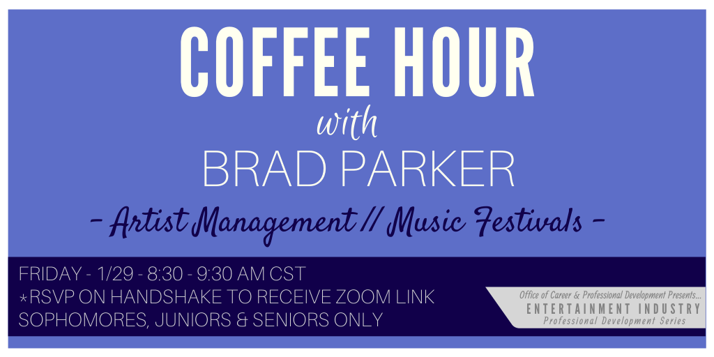 Join industry professional Brad Parker, independent artist manager with TBD Management and previous Strategic Partnerships Manager with AC Entertainment / Bonnaroo for an intimate Q&A to learn about his professional journey in the entertainment industry, how to start an independent artist management company and what it’s like to work the music festivals scene.