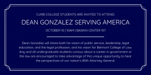 Dean Gonzalez Serving America File under: on September 14, 2018 Calendar Add to Calendar Add to Timely Calendar Add to Google Add to Outlook Add to Apple Calendar Add to other calendar Export to XML When: October 10, 2018 @ 10:00 am – 11:00 am 2018-10-10T10:00:00-05:00 2018-10-10T11:00:00-05:00 Where: Baskin Center, Room 157 Career Development Student Enrichment