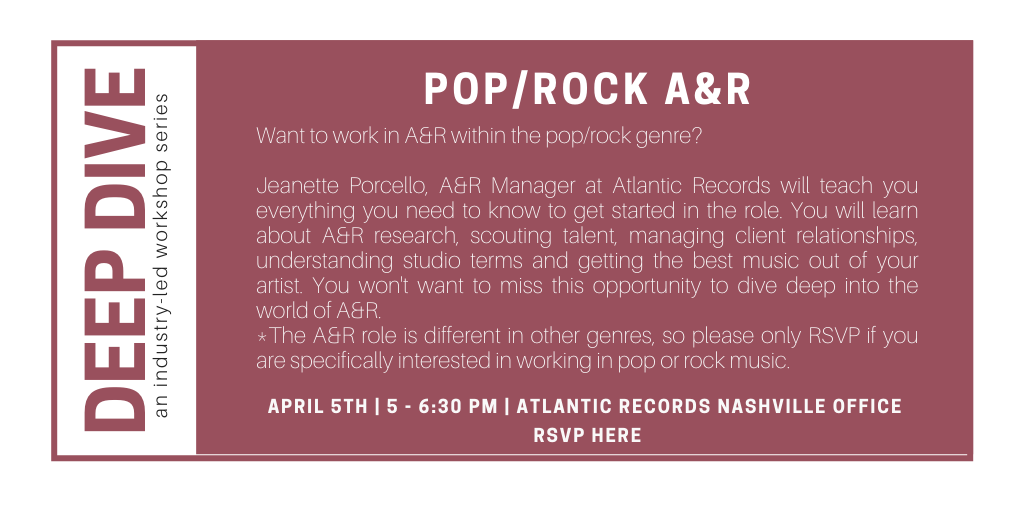 *The A&R role is different in other genres, so please only RSVP if you are specifically interested in working in pop or rock music.