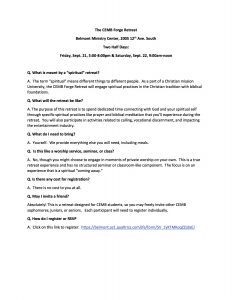 Forge: A Spiritual Retreat File under: on September 7, 2018September 10, 2018 Calendar Add to Calendar Add to Timely Calendar Add to Google Add to Outlook Add to Apple Calendar Add to other calendar Export to XML When: September 22, 2018 @ 9:00 am – 12:00 pm 2018-09-22T09:00:00-05:00 2018-09-22T12:00:00-05:00 Where: Belmont Ministry Center