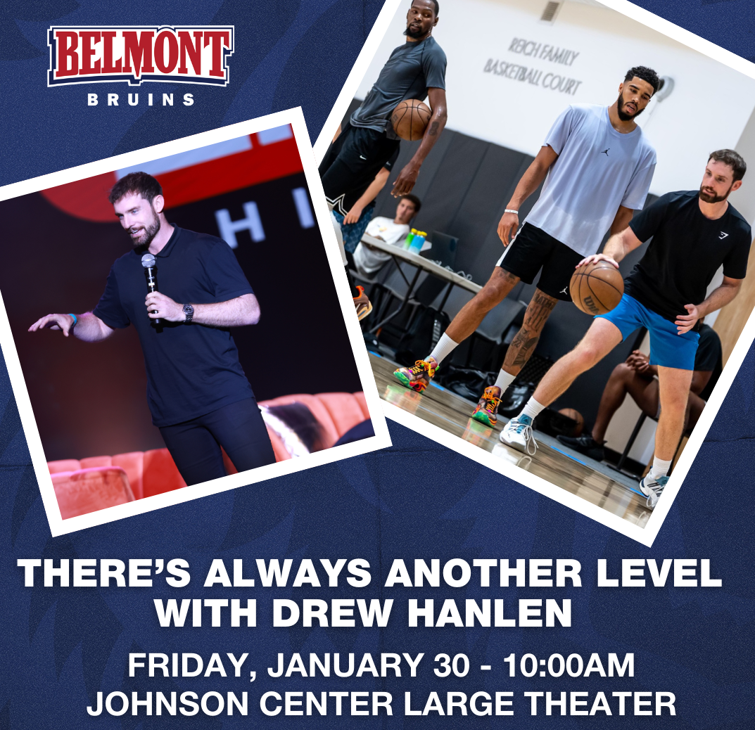 Join us for this inspirational seminar hosted by Drew Hanlen, a Belmont basketball alum who is widely regarded as the world’s #1 NBA Skills Coach, a bestselling author, keynote speaker, and peak performance strategist. His clients include Jayson Tatum, Giannis Antetokounmpo, Tyrese Haliburton, Joel Embiid, & Tyrese Maxey.