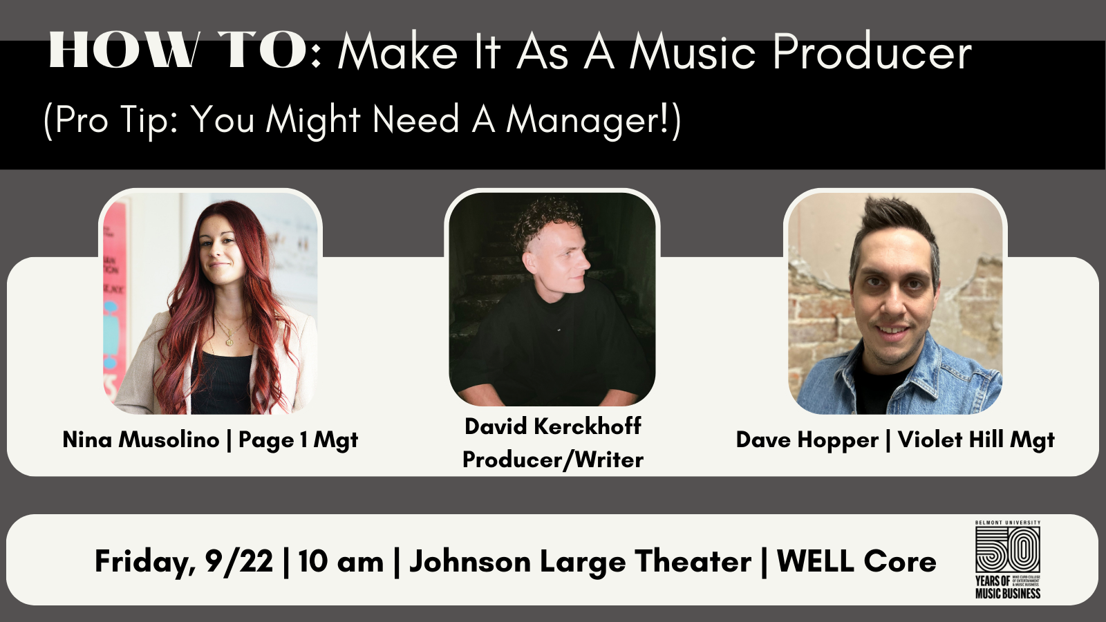 Do you want to know how to make it as a producer? Would you like to learn about different career paths in management? Join us as a panel of industry experts explore what it takes to build a successful career as a Music Producer, including the unique contributions of a Producer Manager.