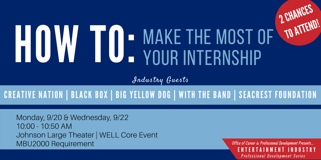 Join this employer panel to learn ways to succeed in your internship and get the most out of the experience. Entertainment industry professionals will cover everything from how to find the right internship, how to build relationships within the internship, how to NOT ruin your reputation, and how to be the “rock star” intern.