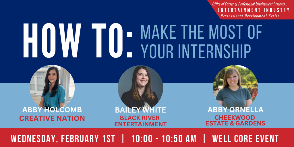 Join this employer panel to learn ways to succeed in your internship and get the most out of the experience. Entertainment industry professionals will cover everything from how to find the right internship, how to build relationships within the internship, how to NOT ruin your reputation, and how to be the “rock star” intern.