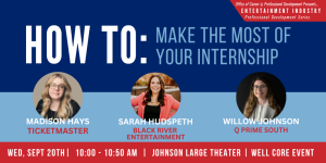 Join this employer panel to learn ways to succeed in your internship and get the most out of the experience. Entertainment industry professionals will cover everything from how to find the right internship, how to build relationships within the internship, how to NOT ruin your reputation, and how to be the “rock star” intern.