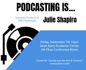 As executive producer of Radiotopia from PRX, Julie Shapiro will present on podcasting as a genre of writing. Starting with defining “what IS podcasting,” Shapiro will then examine podcasting through a few different lenses: content, sound, metrics, industry, and emotion. The presentation will use examples from her work with such podcasts as Ear Hustle, 99% Invisible, and other Radiotopia shows.