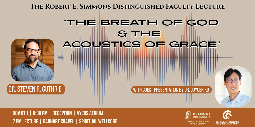 How often do theologians and audio engineers think about the same thing? Join us for the Dr. Robert E. Simmons Distinguished Faculty Lectureship, given by Professor of Theology and the Arts Dr. Steven R. Guthrie with a guest presentation by Professor of Audio Engineering Technology Dr. Doyuen Ko, where audience members will be encouraged to explore the sounding world and its reflection of the character of God.