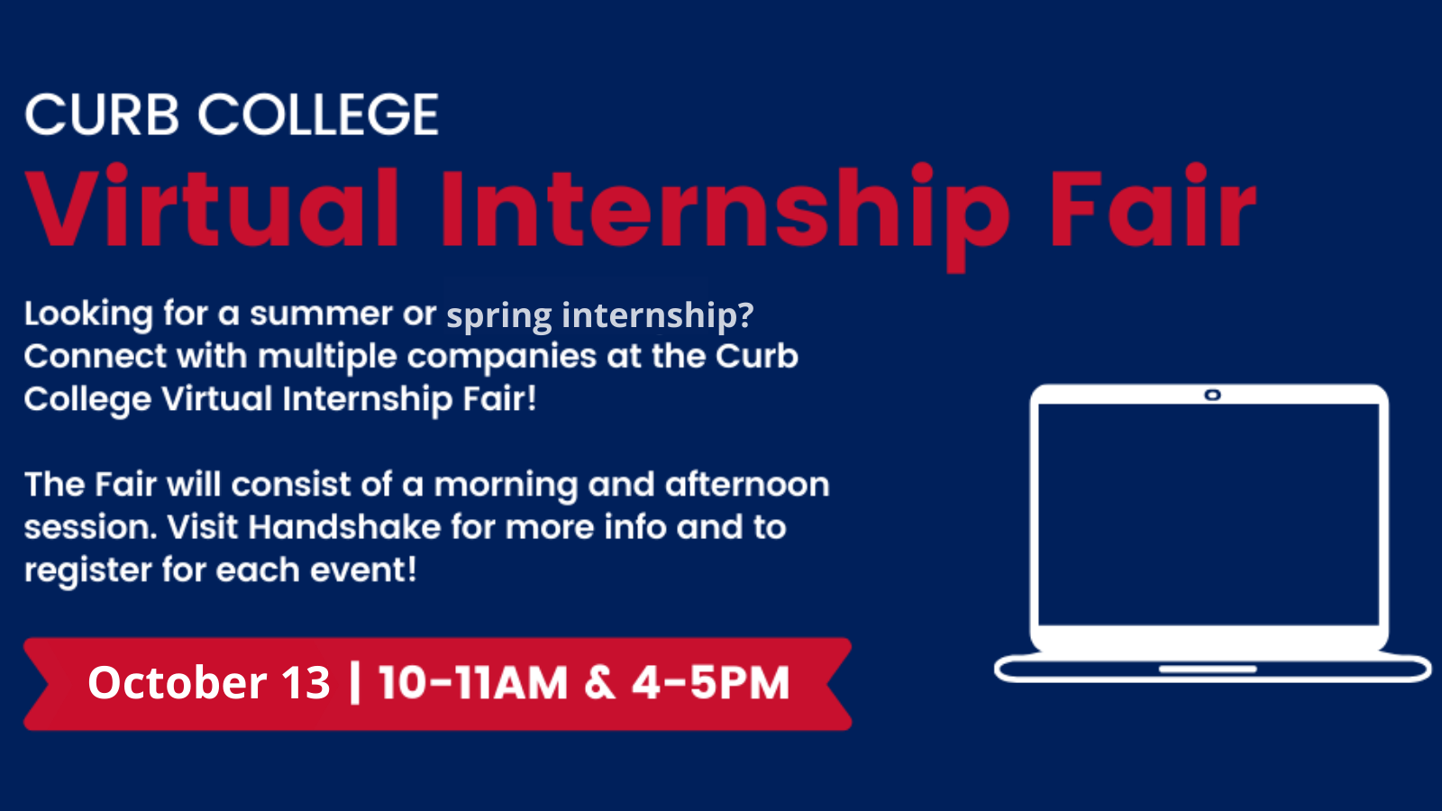 Virtual Internship Fair File under: on September 28, 2021 Calendar Add to Calendar Add to Timely Calendar Add to Google Add to Outlook Add to Apple Calendar Add to other calendar Export to XML When: October 13, 2021 @ 10:00 am – 11:00 am 2021-10-13T10:00:00-05:00 2021-10-13T11:00:00-05:00 Where: Virtual Contact: Julie Jackson Email
